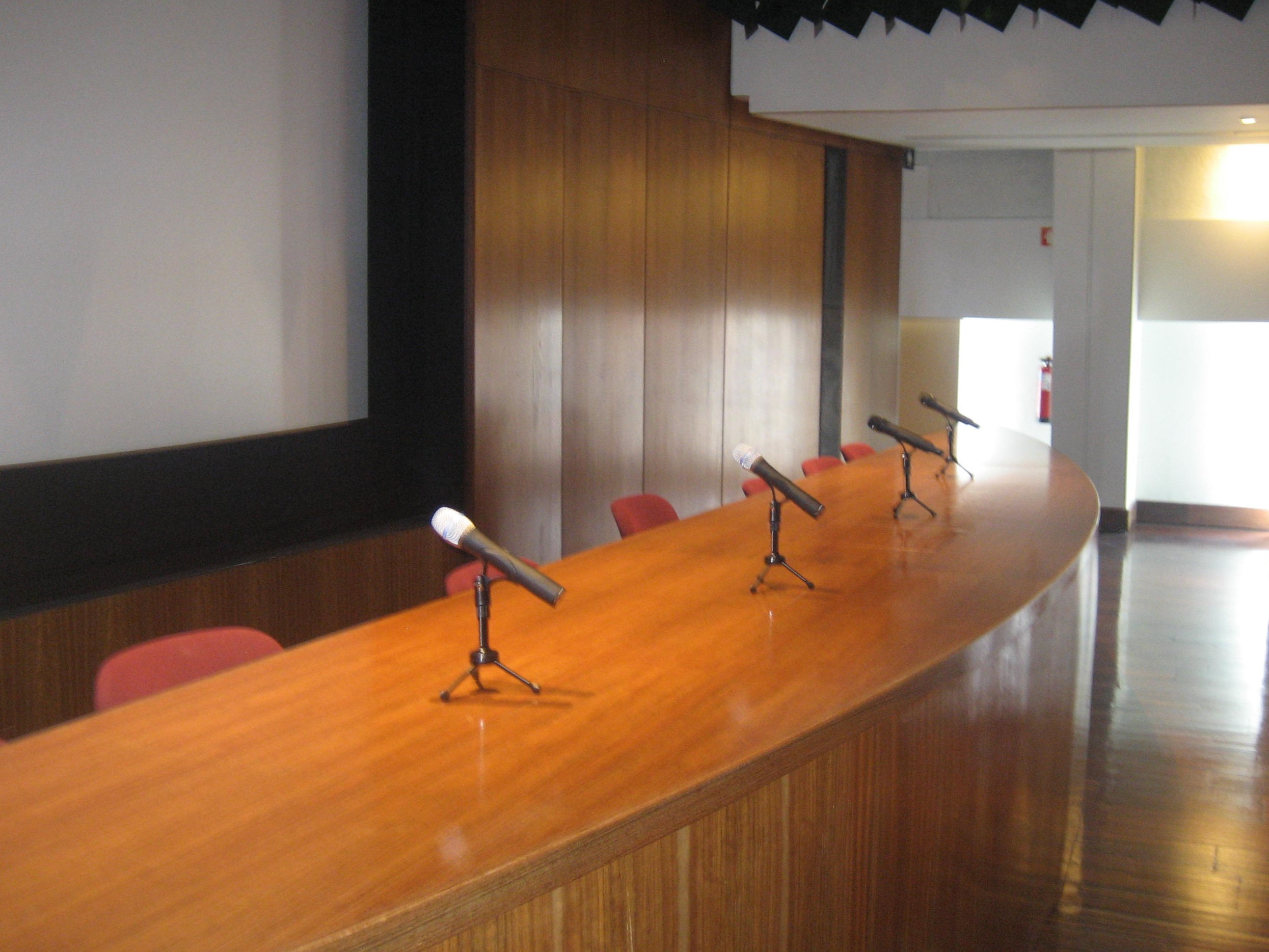 - elevatório, sistema de amplificação de som e microfones portáteis (de mesa e mão).
